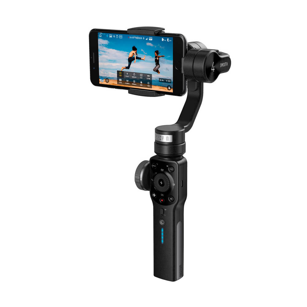 Zhiyun Smooth 4 - электронный трехосевой стабилизатор для мобильных телефонов. Smooth 4 обладает профессиональным функционалом для съемки видео со сложными кинематографическими приемами, такими как, например, «долли зум», «гиперлапс», «таймлапс со смещением фокуса» и так далее.