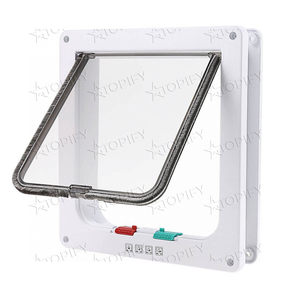 В дверце для животных есть специальные замочки, которые регулируют открытие в 4 положениях: только вход, только выход, полностью закрыта, или полностью открыта для входа и выхода.