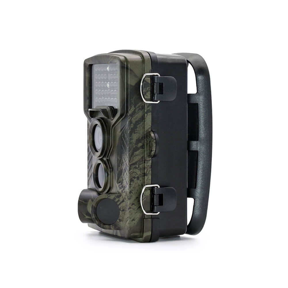 Корпус устройства имеет уровень защиты от внешних воздействий уровня IP65, поэтому она длительное время может находиться под дождём, что очень важно при установке в лесу. Важно, что на задней крышке камеры Suntek HC-800 LTE предусмотрены специальные прорези для крепления ремнём, а сама она имеет слегка вогнутую форму для надёжной фиксации на стволе дерева. Такое решение исключает её смещение при длительной работе без обслуживания. Камуфлированная окраска корпуса делает его незаметным.