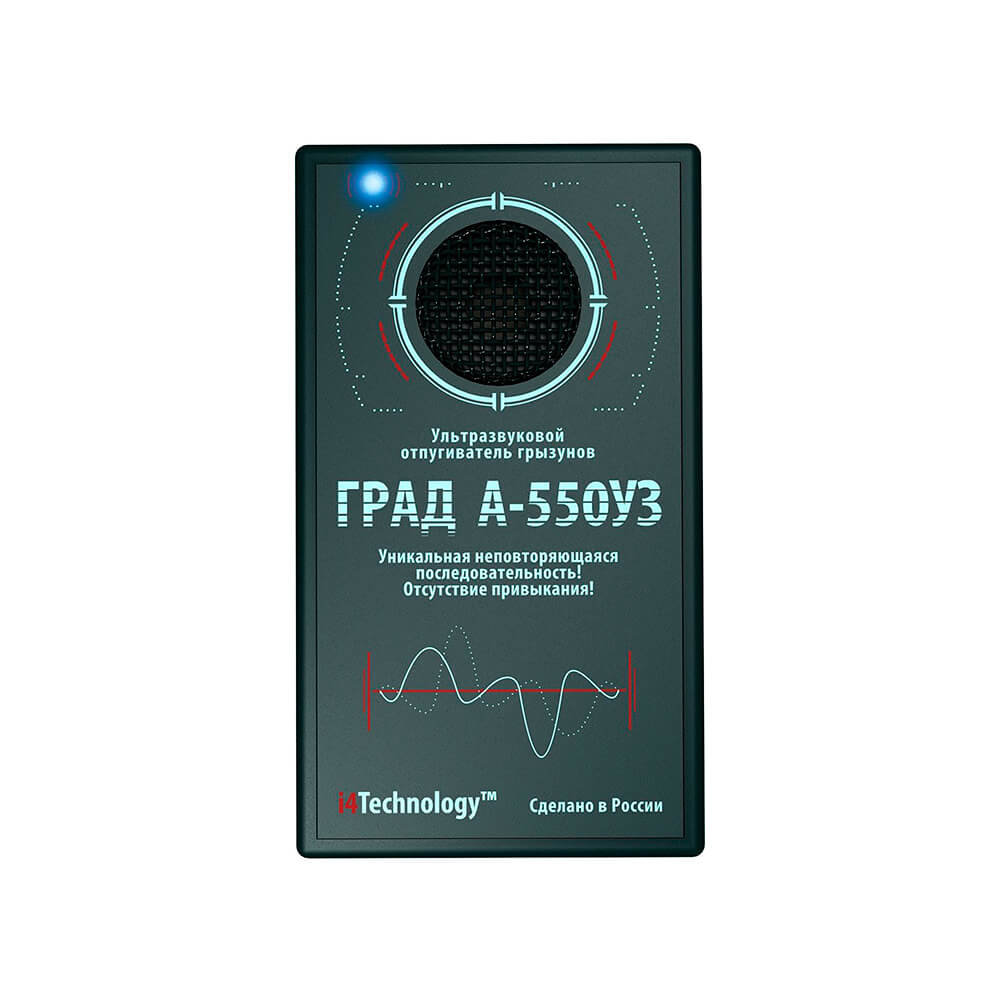 Прибор оснащен мощным излучателем и предназначен для работы в крупных (до 550 кв.м) складах. Имеет высокую эффективность, но отличается умеренной стоимостью. Отсутствие привыкания к работе отпугивателя мышей и крыс для склада "ГРАД А-550УЗ" достигается постоянно изменяющейся по специальному алгоритму частотой излучения. Может работать автономно и в присутствии людей, поскольку излучает в неслышимом человеком диапазоне.
